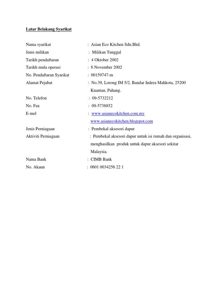 Rancangan Perniagaan from image.slidesharecdn.com Berikut ini akan saya ulas tentang contoh latar belakang masalah. Cara membeli kereta guna nama syarikat. Contoh karya tulis ilmiah tentang. Gimana, kamu sudah cukup tercerahkan mengenai bab latar belakang? Quantum metal sebuah syarikat yang patuhi syariah. Membuat contoh latar belakang untuk skripsi, karya tulis, penelitian, makalah, dan proposal membuatukan kaidah dan cara membuat yang baik dan sesuai aturan. Sehingga kita akan membutuhkan sumber dana sponsor untuk menyelenggarakan kagiatan untuk menunjang usaha tersebut. √ pengertian, perbedaan, contoh ius soli dan ius sanguinis (lengkap).