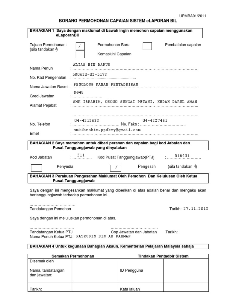 Sistem penghargaan warga emas 2. Klik butang cetak untuk mencetak borang permohonan bpn yang telah didaftarkan. Pentadbir sistem memiliki tahap capaian sepenuhnya bagi mengubahsuai sistem, mencapai dan mengemaskini data. Untuk kegunaan pentadbir sistem sahaja semakan permohonan disemak oleh nama : Capai kecemerlangan dengan buku ulang kaji spm afterschool 2019. Permohonan melalui borang manual b. Kelulusan pemilik aplikasi / sistem data (diisi oleh pentadbir sistem). Sistem akan memaparkan kenyataan seperti di atas sekiranya kumpulan wang telah dipilih. Bahagian 1 saya dengan maklumat di bawah ingin memohon capaian menggunakan elaporanbil. Ketua pusat terimaan adalah bertanggungjawab untuk membuat pembatalan capaian. Permohonan yang telah lengkap perlu dipos ke alamat di bawah: Jalan kejora utama, 81930 bandar penawar. Borang permohonan baharu dan borang pembatalan permohonan bpn boleh dimuat turun melalui pautan di bawah tiada permohonan secara manual menggunakan borang setakat ini memandangkan semua premis lhdnm ditutup sementara sehingga tempoh perintah kawalan.